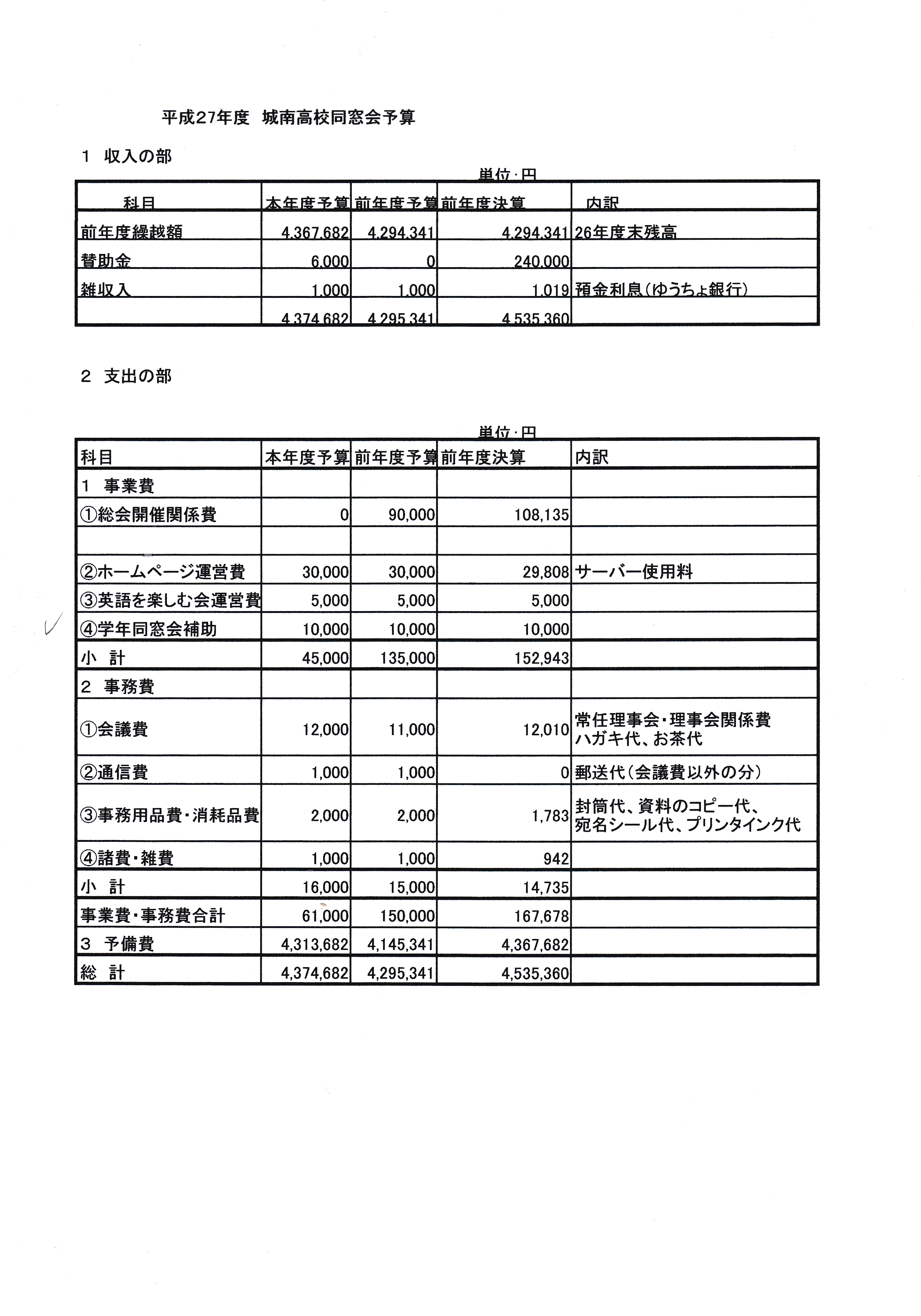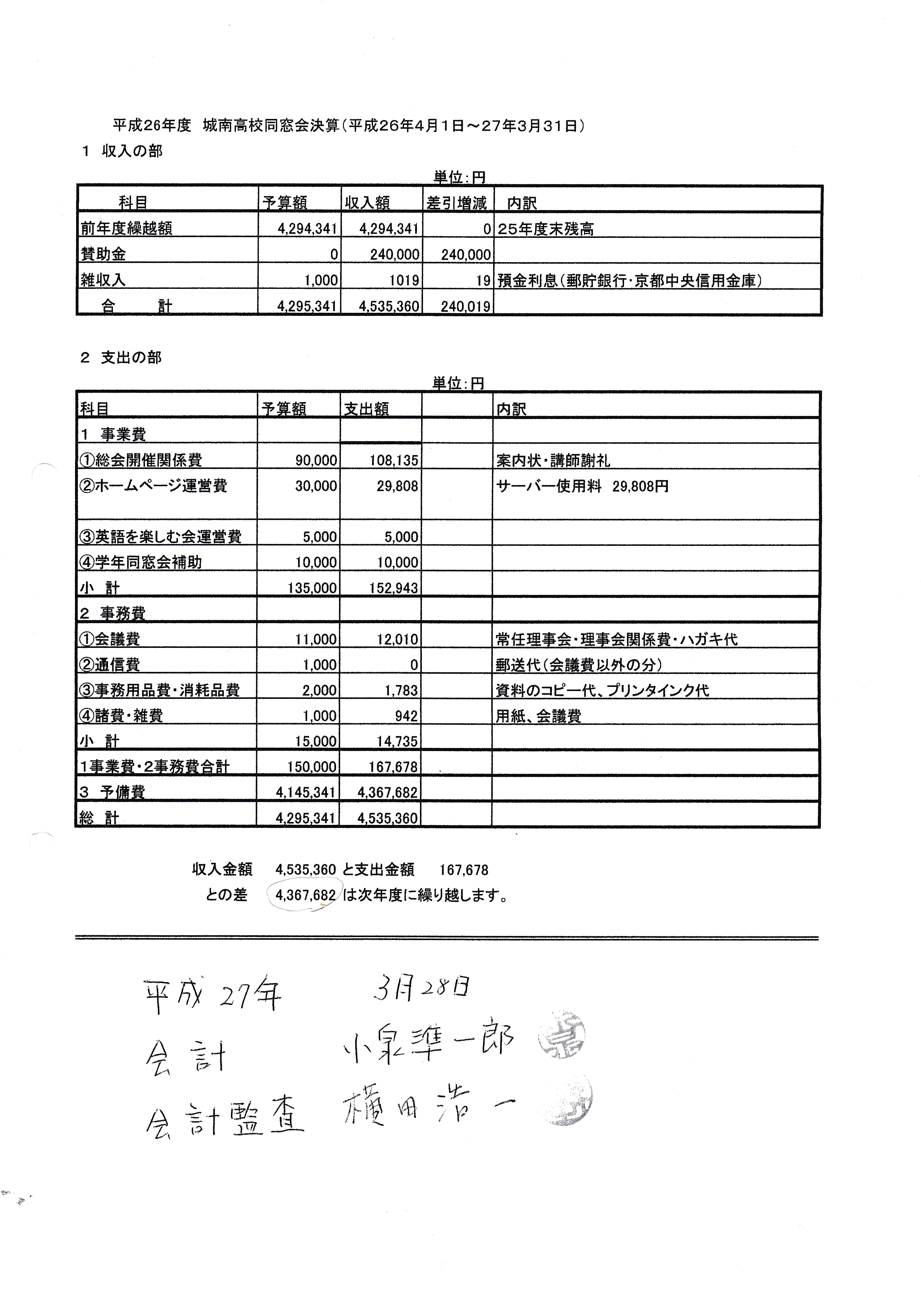 (会計責任者:同窓会会計 小泉 準一郎)